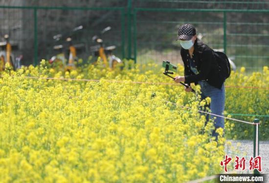 5月17日,在沈陽一公園內,占地面積2萬余平方米的油菜花競相綻放,吸引眾多市民前來觀賞。