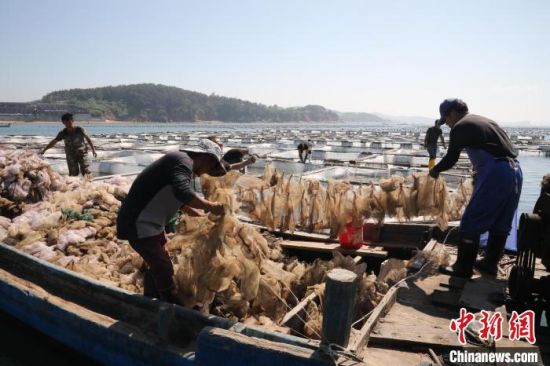 圖為養殖工人進行采捕作業。 楊毅 攝
