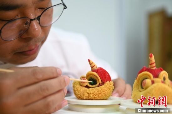 近日,一款以非遺“黎家獅”為原型的國潮酥皮面點“醒獅酥”在網絡走紅。將經典廣東醒獅文化與淮揚中式酥點文化結合,這款點心的原創設計者、沈陽人武楊笑稱自己這次“玩出了圈”。于海洋 攝