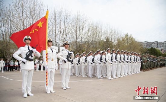 4月23日,海軍大連艦艇學院舉行慶祝人民海軍成立74周年閱兵活動。