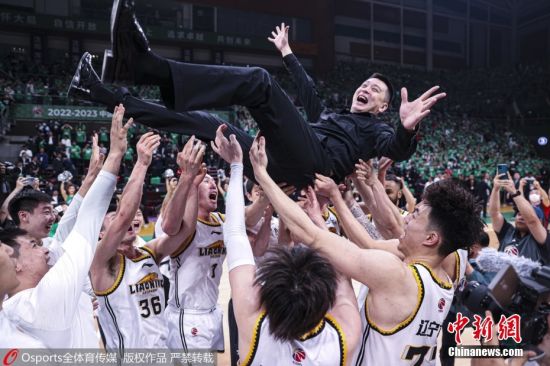 5月15日,在遼寧沈陽(yáng)舉行的2022-2023賽季中國(guó)男子籃球職業(yè)聯(lián)賽(CBA)總決賽第四場(chǎng)比賽中,遼寧本鋼隊(duì)以106比70戰(zhàn)勝浙江稠州金租隊(duì),從而以4比0的總比分奪得總冠軍。這是遼寧男籃第3次獲得CBA總冠軍,也是他們首次實(shí)現(xiàn)衛(wèi)冕。圖為遼寧本鋼隊(duì)?wèi)c祝奪冠。