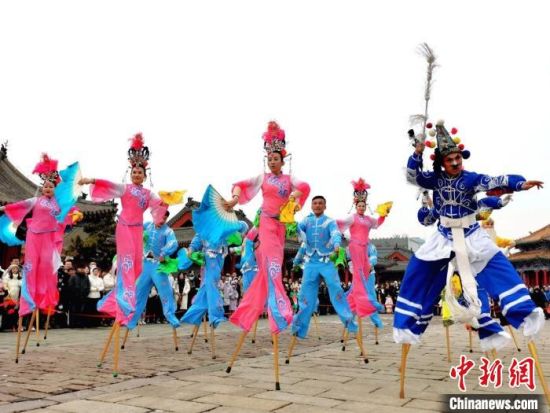 大紅大綠的裝束、歡騰奔放的表演、風趣詼諧的風格,國家級非遺項目——海城高蹺“扭”進大政殿廣場,帶有濃郁地方特色的民俗表演,祈求幸福吉祥的表現主題,令“鬧元宵”的氣氛達到最高點。